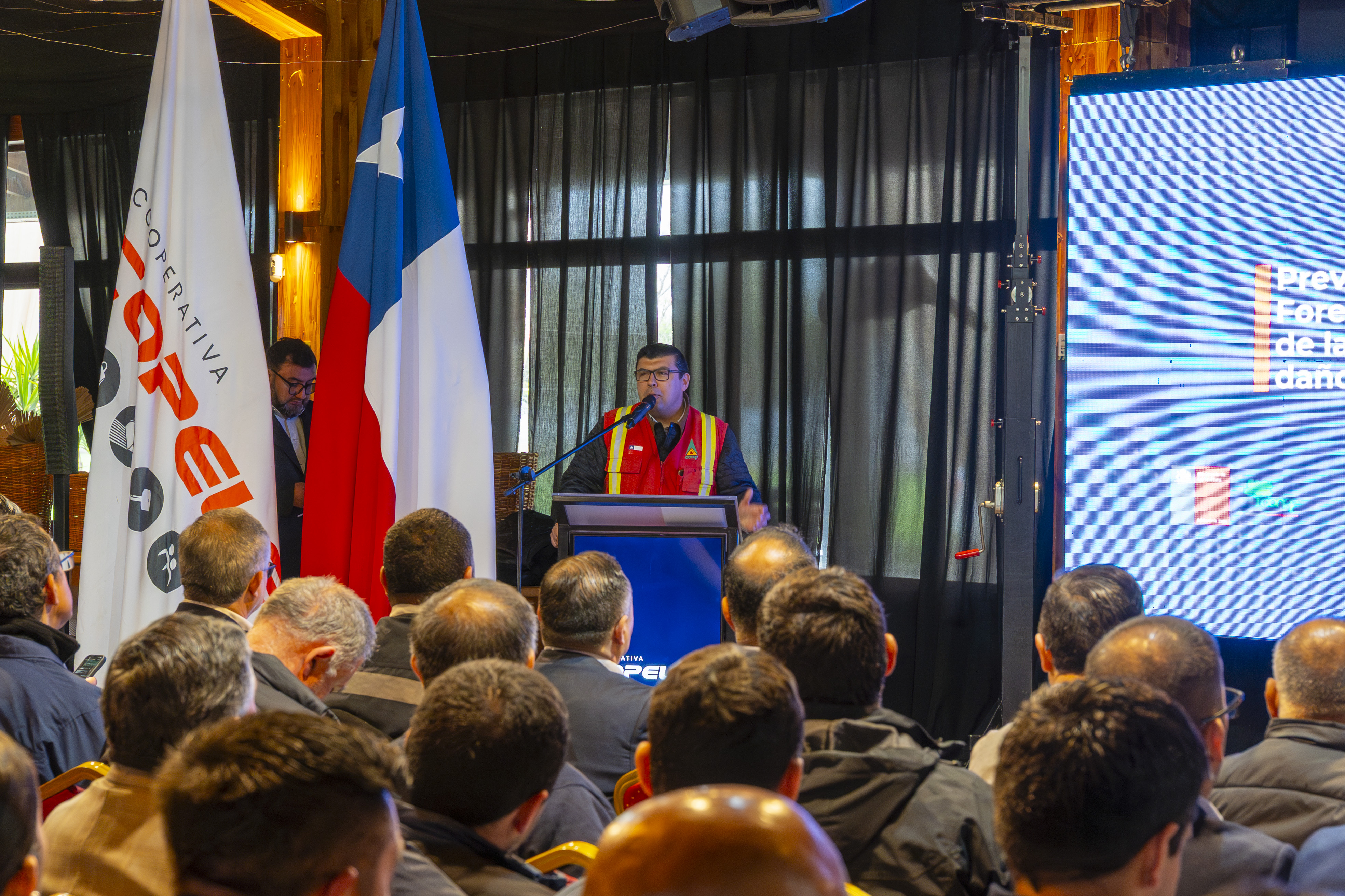 En la jornada participaron representantes de Conaf, Corma, Senapred, Carabineros, PDI, Bomberos, empresas eléctricas y otros organismos vinculados a esta materia. El espacio permitió compartir experiencias, revisar protocolos y fortalecer el trabajo conjunto para enfrentar de manera oportuna los riesgos asociados a incendios cercanos a infraestructura crítica.